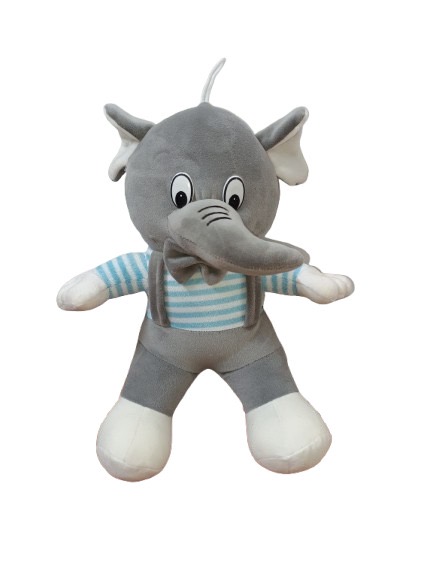 Bring home this cute and cuddly plush elephant that will melt hearts! Made from ultra-soft, skin-friendly fabric, this huggable stuffed animal is perfect for snuggles, bedtime, and playtime. Designed with a striped blue shirt, adorable bow tie, and charming facial details, itโs a delightful gift for kids, toddlers, or anyone who loves elephants.